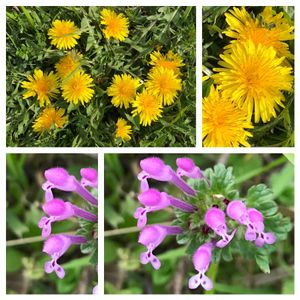 こんにちは ① 沢山咲いているなぁと思って 西洋たんぽぽは二株かな? ↙️ホトケノザのお花の模様が💗型に見えるのですが🔍 ②西洋たんぽぽ💛 明るい気持ちになります (*Ü*)ﻌﻌﻌ💖 ③🌀オキザリスが咲いて… お花の中にお花✿✨️ ④昨日 今年初の四つ葉のクローバー🍀✨️発見!!