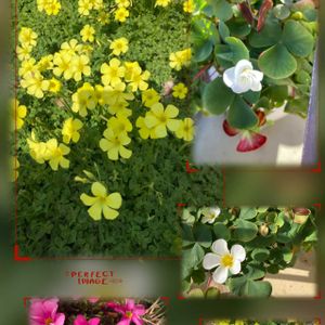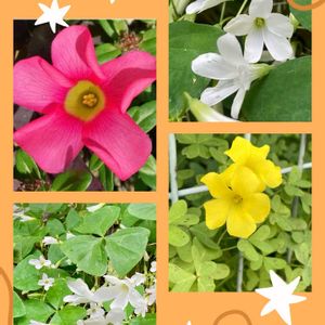 おはようございます😊 今日のお花 💠 カタバミ 💠🍀 身近に見るカタバミさん 色も種類も豊富ですね❤️💛🤍💜 ホッとする野草です🍀 5枚あります🌿 見てくださいね😊🎶💕︎