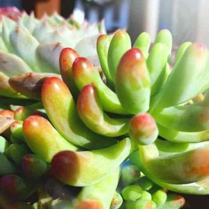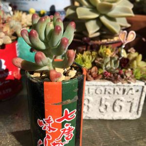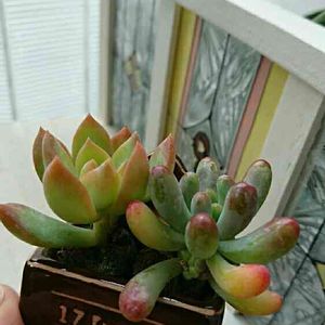 寄せ植えの中のファンファーレ💕 セダムとエケベリアの交配種らしい(知らなかった〜💦) ライムグリーンの綺麗な子✨ 寒すぎて室内管理になってしまった(室内に置いているだけ。。)