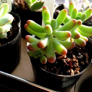 サボテン団地産の乙女心で乙女心丼を作りたかったのだけど、右半分は根腐れで全滅😭 かろうじて上の方の葉だけを救出して葉ざしに😢 葉の根元が黒く腐ったのはどうしてー?