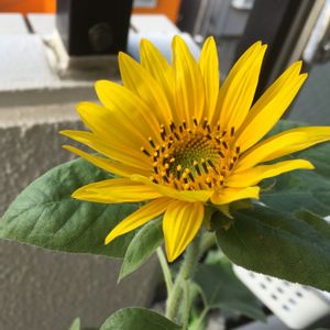 種から育てたミニひまわりが咲きました🌻 それにしてもベランダが暑すぎます😅日よけはつけてるけど猛暑すぎてびっくりです。