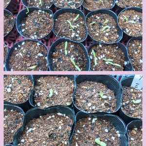 ポット上げ🌱 種まきっ子のコキアをポット上げしました🌱この中のいくつ育ってくれるかなぁ😄💚2枚目は少し前にポット上げしたミニひまわりたち🌱この子たちは丈夫そうだから安心😊🌱3枚目は「あなたはだぁれ?」さんです😆🌱
