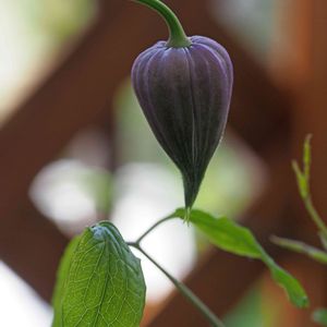 おはようございます。 久々の朝から快晴になってます。 暑さに気をつけて過ごしましょうね(*^_^*) ベランダに咲いている 壺型クレマチス 葉っぱが痛んできたので、剪定しようと思ったら いっぱいちいさな蕾をみつけ そのままで数日・・・ クルリンとカールした花びらが可愛いのです~♪