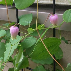 初めて育てた壺型クレマチス、ひどい うどん粉病にかかり、見るのも触るのも気持ち悪いほどになり、バッサリカット✂️したら、新しい茎が出て葉っぱが茂り、誘引どうしていいかわからずに先送りしてたら絡まって、どうにもならないところまできて…… 、そして可愛く咲いていた😂💦 まだ伸びているけど、ほんとどうしていいか わからん🤣