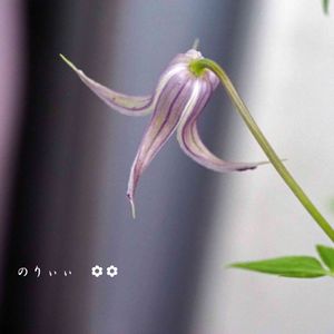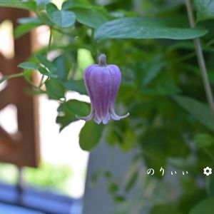 おはようございます。 ベランダの壺型クレマチス。 淡い紫色の花先がクリン ちいさな花で可愛いんですよ。