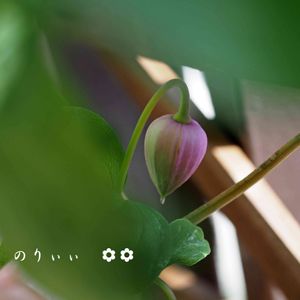 おはようございます。 きょうも壺型クレマさんです。 名前が・・・・?? おともだちから、いただいた時に名前も書いて もらってたんですが、字が消えかけていて 読み取れないのです。 このクレマさんもちっちゃな花です。