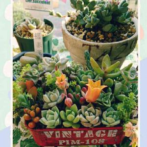 またまた月末にマルシェを開催することになりました🎶 最近輸入を始めた韓国苗とボチボチ作っているリメ缶。 そしてこんな寄せ植えを持って行きたいと思います。 人見知りなので、正直前回も植物好きなおじ様達としか交流していません(>人<;) まだまだ未熟者の新米で、ここに載せるのも恥ずかしく迷いましたが、思い切って宣伝(≧∇≦) お近くのタニラーさん、冷やかしでも良いので覗きに来てください。 6月30日.7月1日 海津市のおちょぼさん参道にて。 インスタ#35マルシェです。