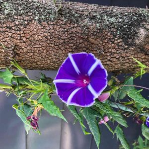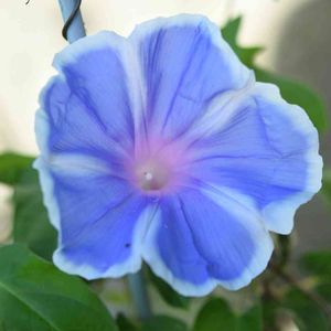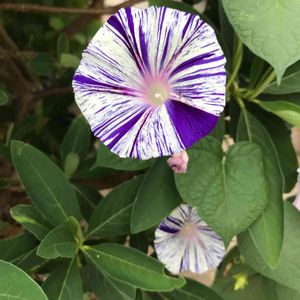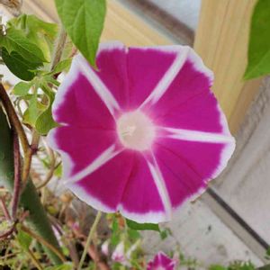 今年も朝顔が咲き始めました🎐 花の中心から放射状に白い筋が出る曜白(ようじろ)朝顔。 本葉が8〜10枚(サイトによっては5枚とも)摘芯するとよいとありましたが、それ以前にもう咲いてます😶