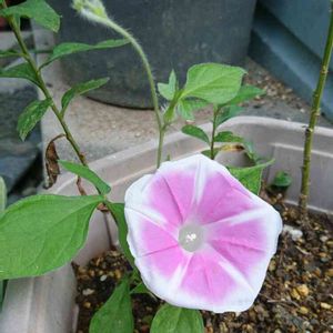 朝顔 曜白 🌼✨ 片付けた朝顔、 こぼれ種から無事開花✨