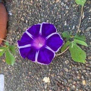 朝顔でしょうか?種を蒔いていないのに庭に小さく咲いていました。今は鉢にあげて成長を見守っていますが、小振りちゃんのままです。葉の形が私が知ってる朝顔のとはちょっと違うような気がして投稿してみることにしました。