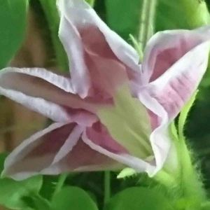 朝顔 曜白 🌸 スモークピンク 夏の名残り、こぼれ種からの開花……咲き始め🌼✨
