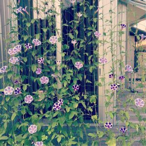 色とりどりの朝顔が咲き乱れてます。✨ 打ち上げ花火みたいに。🎇