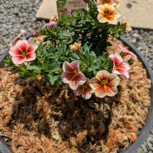 我が家のカリブラコア 梅雨前に切り戻し、今はこんな感じ.* ꕤ︎︎ ①②カリタスティック *カプチーノ* ③ミリオンベル *アンティークオレンジ* どちらも、ちょっと目を引く花柄です