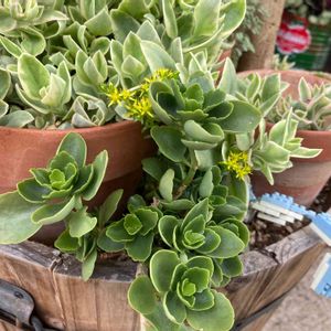 おはようございます 過ごし易い季節ですね〜🍀 今朝のpic 『覆輪丸葉万年草』セダム 花は咲いてないですが、存在感がハンパ無かったので登場させてみました( ¨̮ ) 凄〜く大きな🪴にモッコウバラを植えたんですが、余りにも広々した場所が勿体無くて3年前にたった一株の覆輪丸葉万年草を植えてみたら どんどんどんどん広がってこれは匍匐苗ですね 鉢の高さは45㎝くらいあるんですが それも覆い尽くすくらい垂れてワッサワサしてます モッコウバラに栄養あげてるからこんなに育ってしまったのかな🤔💭 中々凄いですよ🤣 ここまでいくとどうしようも出来ず只々見守るしかなくて… 欲しい方差し上げますよ🗣💬⋆͛📢⋆ 𝐇𝐚𝐯𝐞 𝐚 𝐧𝐢𝐜𝐞 𝐝𝐚𝐲𓋪𓈒◌𓂃🥀𓈒𓂂𓏸