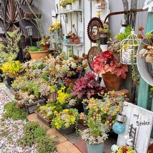 ガレージの壁際ガーデン記録! その⑤ 最後は全体像を😅 5月半ばのガレージの壁際ガーデンは多肉が花盛りで賑やかな感じになってます❣️ 真冬もこの場所でよく頑張りました👏👏 これからの梅雨時期や真夏の暑さ、西日にも負けずに頑張ってね😊 その⑤まで見てくださってありがとう 💕