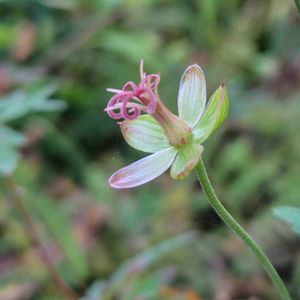 山に咲く花 伸びた茎の先に 薄い青紫色の釣鐘形の花が 下向きにたくさん付けます🎶 花柱(雌しべ)は 花から長く突き出る😁 釣鐘人参(つりがねにんじん) キキョウ科