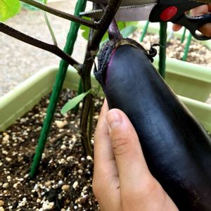 娘と貸農園を借りて ハーブ🌿と野菜🍆🍅を育て始め、初めての収穫✨✨ 熱中症になりそうだったけど感激‼ ღ.。.:* ♬*🍆🍅