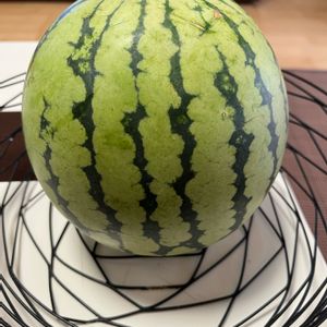 スイカ🍉収穫しました😊 以前全く実が付かないとボヤいた後に.... ピンポン玉程のスイカの実を2個発見しました🥹。 余計な枝を全て✂️して、成長を見守ってきましたが、前回の台風の後から、成長が止まった様なので、昨日一個を収穫しました。 高さは20cm、重さ2.6kg 小さいけど、ちゃんとスイカ🍉です😅💦 早速孫達を呼んで、試食会をしなくっちゃ。 もちろんこれだけじゃ満足して貰えないので、美味しいおまけを用意しなくっちゃです😅💦