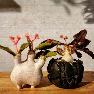 ■Euphorbia francoisii 言わずと知れたフランコイシー。 右:フランコイシー1号 左:フランコイシー2号 中:フランコイシー3号 「好きなユーフォルビアを5つあげてください」と言われたらフランコイシーは必ず入ります。あとの4つが何かと言われたら、デカリーも入りそうですが、残り3つが何になるかはパッとは思いつかないですけど😝 いつものラフレシアリサーチさんから、3号をお迎えしました。 最高気温32℃、最低気温24℃ ・・・・・・・・・・ 以下、商品説明。 ユーフォルビア・フランコイシー、華麗なるハイブリッドの世界 その世界で最も著名で権威のあるリトルワン・プランツ・ナーセリーの園主、レック氏 が情熱を傾けた育苗苗。 フランコイシーの世界はロマンチックで葉脈の多彩さ、色彩の鮮やかさや複雑さなど観賞する視点は様々です。 当社はリトルワン・プランツ・ナーセリーの認証を受けた公式なビジネスパートナーです。 レック氏は5月に開催された東京プランツワールドでは、訪日を楽しみにしておりましたが、コロナの影響の為ステージイベントにビデオ出演しました。 フランコイシーのより詳しい内容については、YouTubeで紹介しております。 https://www.youtube.com/watch?v=E6412pxXimM 2018年にレック氏は、おそらく世界で最初のフランコイシ―専門書を上梓されました。「EUPHORBIA FRANCOISII The Jewel of Succulent Euphorbias」 (以下、多肉植物全書より) ◯ユーフォルビア属 本属は2,000以上の種を包含し、海岸、常緑乾燥林、砂漠から熱帯雨林まで、環境を異にする世界中の様々な地域に分布する。タイにもユーフォルビア・アンティクオルムに代表されるタイ産の数多くのユーフォルビアがあるが、インド産のユーフォルビア・ネリーフォリアやアフリカ産のユーフォルビア・チリカルリ、マダガスカル島産のユーフォルビア・ミリーのように、古くから栽培されてきたためにタイ産の植物であると誤って認識されているユーフォルビアも多い。 本属の構成種の分類については、形態学的な形態分析に加えて分子生物学の技術を用いた分類が行われた結果、他属との統廃合が行われ、現在はモナデニウム、ペディランタス、シナデニウムがユーフォルビア属に編入されている。 ◯francoisii Leandri マダガスカル島南部の海抜50メートルまでの範囲に分布し、灌木の茂みや砂丘に自生する。自生地は近接し合ったわずか5か所の狭い地域にしか確認されていない。焼かれて木炭にされたり、園芸目的の盗掘に遭うなどして、現在絶滅が危惧される状況にある。 本属は植物学上はユーフォルビア・フランコイシー・クラシカウリスとユーフォルビア・フランコイシー・フランコイシーの2つの変種に分類される。両者の形態を比較すると、ユーフォルビア・フランコイシー・クラシカウリスの特徴として、茎により長い毛を持つこと、葉を密生させること、葉身は薄いが硬いこと、葉の骨(主脈)は明瞭な稜状であること、より鮮やかな色合いを持つことが挙げられる。こうした形態の違いから一部の植物学者は、両者は将来的には別種として分類されるだろうという見解を示している。