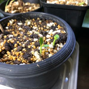 えと、、 撒くつもり無かったんですが、入れてる袋の中で発芽して来ちゃって😅 先日のフランコイシーさん 4つ出てきました😅