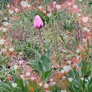 こんばんは。 今日は肌寒い1日でした。 帰り道の土手にチューリップが一輪だけ咲いていました😃💕 どなたかが球根を植えたのでしょうかね? 何だか元気が貰えます🤗