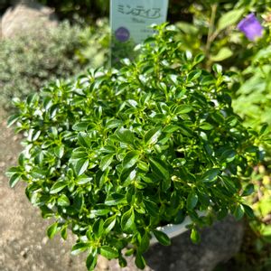 ミンティア💜 暑い日差しに、照らされて輝く葉っぱが美しい☀️✨ 良い香りがするので、小さな花瓶に飾るのも良いかもです。