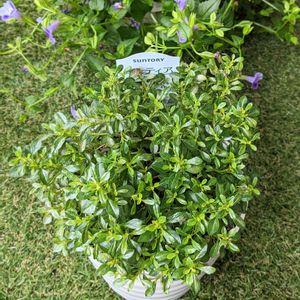 💐2023.7.15 ☁️ suntory_flowers_jp さんの サンフラアンバサダー2023 で頂いた サマーミストバイオレット リトルチュチュレモンミスト ミンティアパープル 植え付けからもうすぐ2ヶ月✨ それぞれ大きくなりました❣️😊 どの子も初めて育てるのでサマーミスト やリトルチュチュは切り戻したほうが いいのかな⁇😖分からず🤦💦 手探りでお世話をしています😭笑 サマーミストは暑くなってから特に 水切れが激しいです💦 この3苗は半日陰でお世話をしています✨