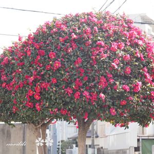 おはようございます。 近所の公園にて。 満開の山茶花です。 きれいに剪定されて見ごたえいっぱい♪
