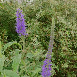 4月30日 今日のお花『ベロニカ』です。 【ベロニカ・ロンギフォリア(ルリトラノオ)】 ヨーロッパ原産、ゴマノハグサ科宿根草 花期は7~9月、草 丈は50~100cm。 茎の上部に穂状の花序を出し、下の方から小さな花を多数咲かせる。 基本種の花色は藤紫だが、濃い紫や白花の品種もある。 ベロニカ属は種類が多く、ほふく性の園芸品種には「オックスフォードブルー」などがある。 北九州市立総合農事センターにて(7月)