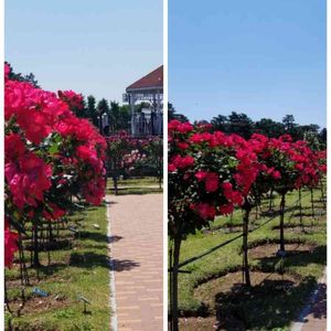 気持ちの良いお天気 のんびりとバラ見学 10時を過ぎるころ幼稚園児の遠足の様子。 バスツアーで来られる方々が徐々に🎌