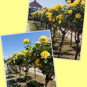 色々な国のバラと 日本コーナーがあります 鮮やかな黄色。