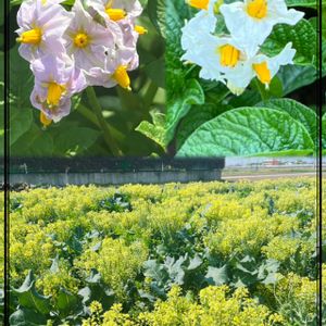 2色のじゃがいもの花🥔 ブロッコリーの花が畑一面に咲いていました🌼🌼🌼