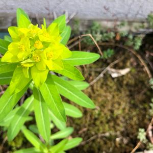 石垣の下と道の端に咲いていました。 トウダイグサ属💚💛ユーフォルビア系名前は❓ 桃ちゃん🍑🍑型の実がかわいいんだよね🎶 タカトウダイと名前を教えていただきました🎶ありがとう😆👍