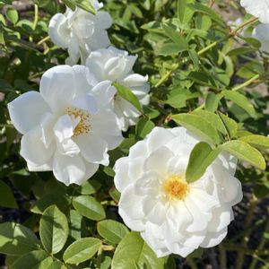 お出かけついでにバラ園へ寄ってきました🤍🌹 白い薔薇で有名なアイスバーグ満開🤍 もう少し前に見たかったかな🤍 1983年世界バラ会議で殿堂入りした白バラの名花だそうです つる性もあるようですがこれは木立性ですね 作出国 ドイツ 作出年 1958年