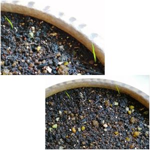 🍀こんにちは🍀 今日はチリアヤメの種をまいて下さった皆さんにお知らせです。 ↗これは私が11月に種をまいた時のものです。 時計回りに見て下さいね。 ↘1月9日 芽🌱らしきものが出たか?とアップしました。 実はこれ、雑草の芽🌱ではないかと思い、今日引っこ抜いてみた! そしたら、チリアヤメの種を確認しました。 ↙赤丸。こげ茶色が薄い茶色になっており、膨らんでいるように見えました。 気温が上がって来ると発芽すると思われます。 どうかもうしばらくお待ち下さいね。植木鉢はそのまま置いておいて下さい。何卒よろしくお願いしますm(_ _)m チリアヤメについては 🔖チリアヤメの花 🔖チリアヤメを育てよ タグがあります! 🔖チリアヤメ育てよ については可能な限りフォローさせて頂きますので、どうぞよろしくお願いします🍀 もし、育ててみたいと思われる方がおられましたら、また秋になりますが、種を差し上げます(郵送) 花が咲くまでには2年程かかりますが、どうぞお知りおき下さいね。