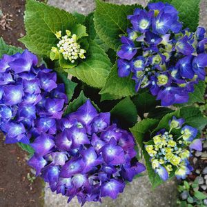 アジサイ【ディープパープル】 和のエリア 地植えしたいけど... ブルースカイとブラックダイアモンド・ライトマイファイヤが地植えしてあるので、 とりあえず鉢植えに