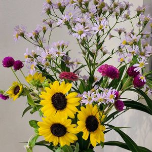 シオンのお花を見ると ふるさとの野山を思い出します 𑁍✽.。.:・゚ ✽𑁍✽.。.:・゚ ✽𑁍 守衛室の前のカウンターに いつも季節のお花が飾られています 昨年の秋には かぼちゃや木の実が置かれていたことも🥰 「いつも可愛いお花をありがとうございます」 お礼を言うと 「うちの畑の隅にいろんな花が咲くから··· 持ってきて、ただ挿しただけ」と 守衛さんは にっこり笑ってくれました😊 🍁🎃🌰