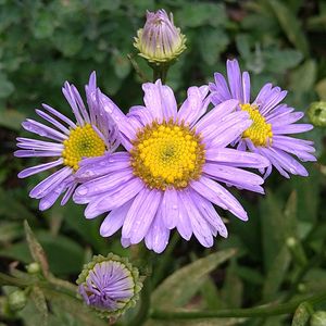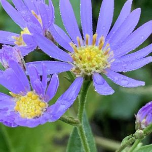 おはようございます😊 7月に咲いた低い背丈のシオンです💜 🏷 今日のお花シオン😄 ④⑤ 昨日の雨の中のアメジストセージ💜😆