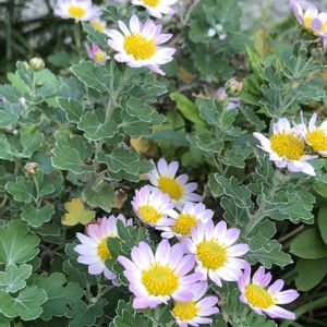 野路菊 歩道の植栽 白い縁取りの丸っこい葉♡♡ 小菊ってこんなにかわいい 幼子のように唯々可愛らしい🥰