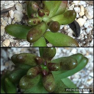 こんにちわ🌝 最近陽射しが強いですね~🌞 多肉を始めて日が浅いので、葉焼けが心配な今日この頃です💦 今朝の1枚は、寄せ植えの別角度😊南十字星?の色合いが綺麗になってきた気がします✨ そして、プロリフェラがにょきにょきしてきた😅(笑)