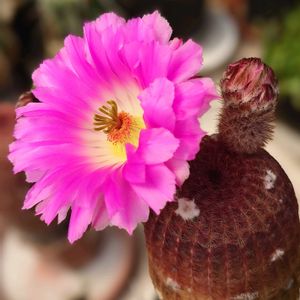 本日2投目🙇♀️ PINK🩷PINK🩷PINK 左から ゲオメトリクス、蓬莱宮、紫太陽 せっかくなので、並べてみました💕 pic② Tephrocactus geometricus テフロカクタス・ゲオメトリクス 待ちに待ったゲオちゃんの蕾が、ほころび始めたが、今日はここまで⤵⤵ 明日は一日中曇り予報☁️ どうしましょ😮💨 pic③ Mammillaria schumannii マミラリア 蓬莱宮(ほうらいぐう) 今年2つ目の花が咲きました🌸 pic④ Echinocereus rigidissimus var. rubrispinus エキノケレウス 紫太陽 昨日初開花の紫太陽💜 今日も美しい🩷 3つ揃って咲いたところを撮影したかったが 日が当たらなくなってきたので、断念💦 🏷ピンクワールドへ ようこそ 🏷月曜日は元気色の花 参加させていただきます(⋆ᴗ͈ˬᴗ͈)”