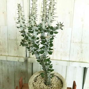 とっても可愛い観葉植物屋さんをインスタで見つけて行ってきました。 本当に好みの植物ばかりで、普通の花屋さんではなかなかお目にかかれなそうな珍しい植物もたくさんあって、楽しすぎました😆💕 そしてなかなか個性的なこちらを購入。 知らなかったんですが、アローディアプロセラっていう多肉植物です。 白いトゲトゲの体に緑の葉っぱがついてておもしろいなぁ😊✨ 小3の息子が、これめっちゃオシャンティーやん‼︎って絶賛してくれたのが意外でした😁🎶