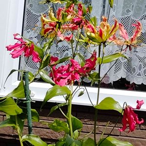 グロリオサ 3球しか植えてないけれど、花付きが良いです。 🏷️日曜ビタミンカラー♪