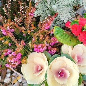 葉牡丹のジュエリーシリーズBLACK LEAF🍃 寄せ植え🪴してあったものが巨大化したので、庭植えにしました😆 今朝、開花🌼しました⤴️⤴️💗 黄色の花🌼が咲くんですね✨✨ かわいいです😍💛💛 この花🌼って、夏越し、冬越しできるんですかね? できたらいいな🤗 しかし、お花が咲くって素晴らしい🌼🌸
