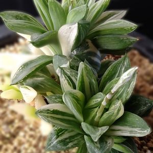 2020年秋にお迎えし、11/10に投稿した頃は、とっても立派✨で格好良かったんですが… 次の年の6/15に投稿した頃には、見るも無惨に徒長しまくり…😅 今現在は、やはり徒長+凹み気味にて、カップ復活実験中(2週間経過)の宝草錦さん💓(たぶん。札落ちの子です) さっき久しぶりにカップを開けてみたら……… なんとっ👀💡💓初めてのお花が二つ🎶 いつの間に〜⤴️❗❔( ꈍᴗꈍ)💕