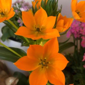 お花が増えて賑やかに なりました🧡🧡🧡 オレンジ色のお陰で 毎日元気を貰っています ホワイトもあるんですね 出会ってみたいな