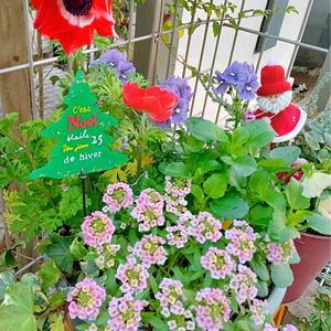クリスマス寄植えにサンタピックを挿すと、さらに雰囲気でてきました🤩