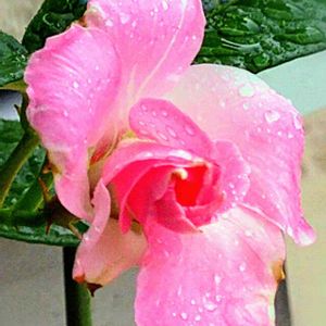 今日は台風が接近しているため朝から雨です☔️ 玄関先に避難させていたマンデビラピンクマリーが初めて咲きました☺️☘️ ちょっと形は悪いですが… 頑張って咲いてくれてありがとう🥰