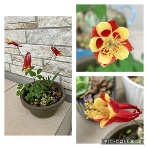 オダマキ ちゃん♬ 多肉の子株をあげたら 育てたことのないお花 「オダマキ」をもらいました🎶 友達にいそうな名前の オダマキちゃん🎵 前から見ても 横顔も個性的な可愛いさ💕