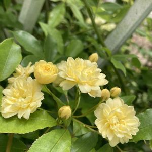 モッコウバラ。 去年小さい株を買って、1年経ちました^_^ あまりお花は、🌼咲かなかったけど、フェンスには、かなりの葉っぱが、しっかり目隠しの役目をしてくれるように。 来年は、あふれるように咲いてほしい😊❤️